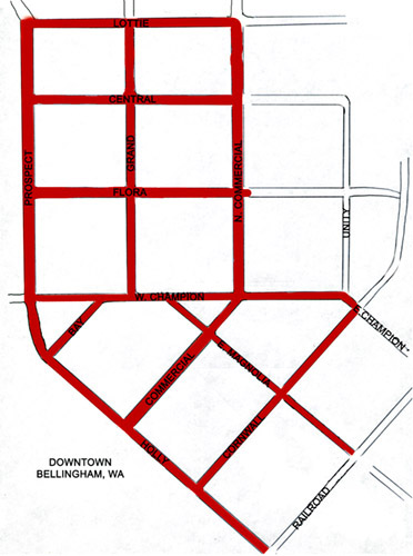 along the sidewalks of 27 linear blocks of the Downtown core.